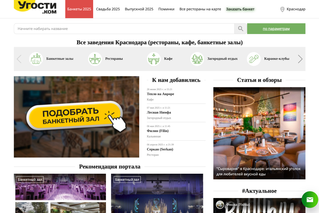 Каталог ресторанов всех крупнейших городов России. ТОП 5 выдачи в поисковых системах.
